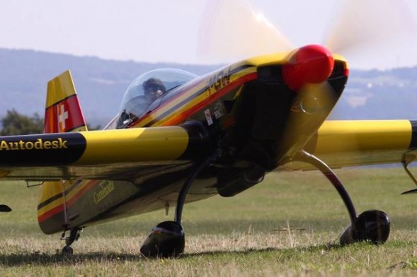 Susanne Vogelsangpräsentiert Wettbewerbskunstflug auf der neuesten Entwicklung ihres Vaters Max Vogelsang der MSW Votec 351. Sie erflog vordere Platzierungen bei den Schweizer Kunstflugmeisterschaften 2003-2009.