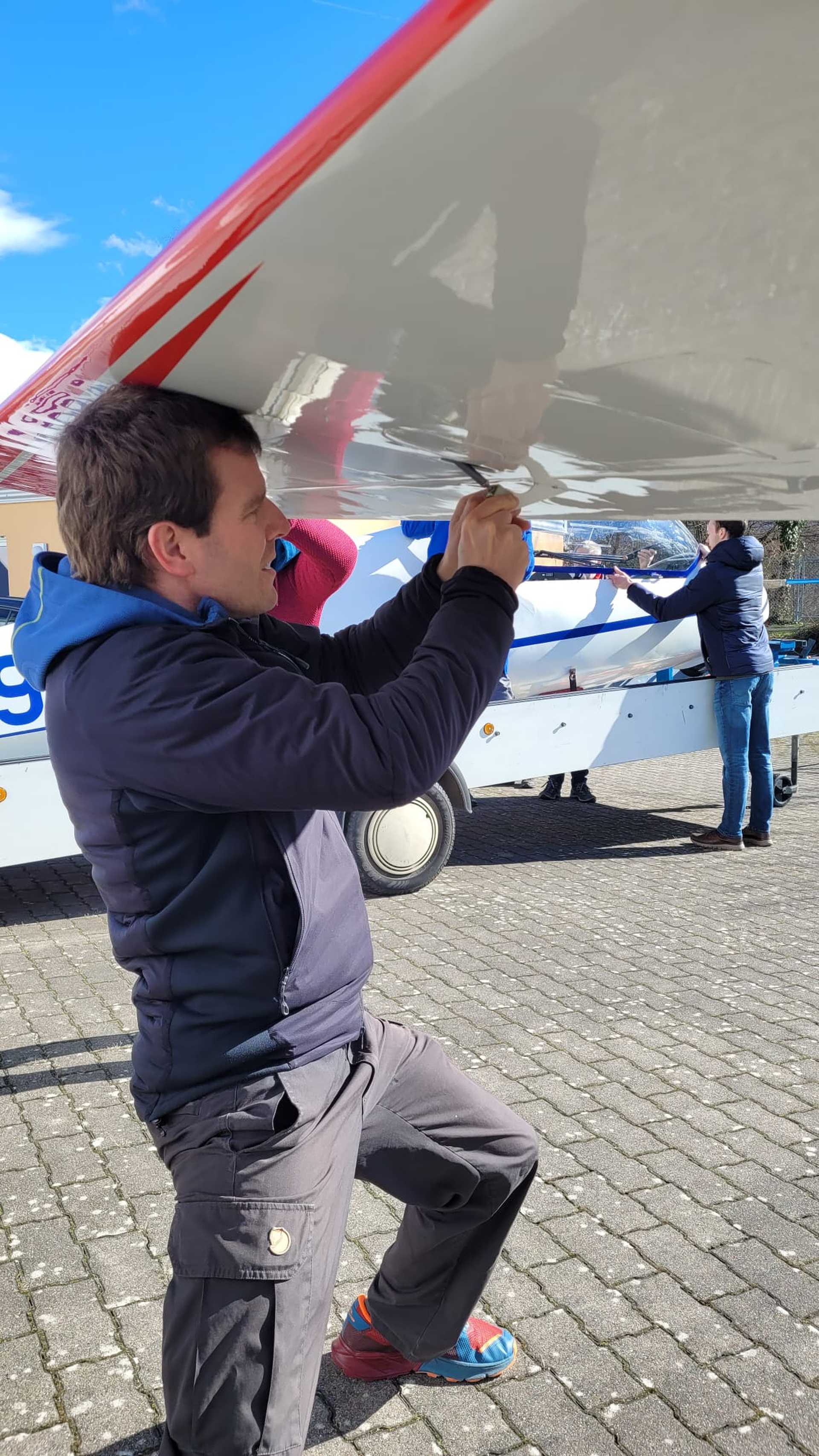 Ende Februar hat unser Prüfer Philipp die letzten beiden Flugzeuge abgenommen. Ähnlich wie ein Auto beim TÜV wird ein Flugzeug einmal im Jahr auf seine Lufttüchtigkeit geprüft. Vor dieser Prüfung steht neben einer gründlichen Reinigung inklusive Politur der Oberfläche die jährliche Wartung an und kleinere Schäden z.B. im Lack werden repariert.