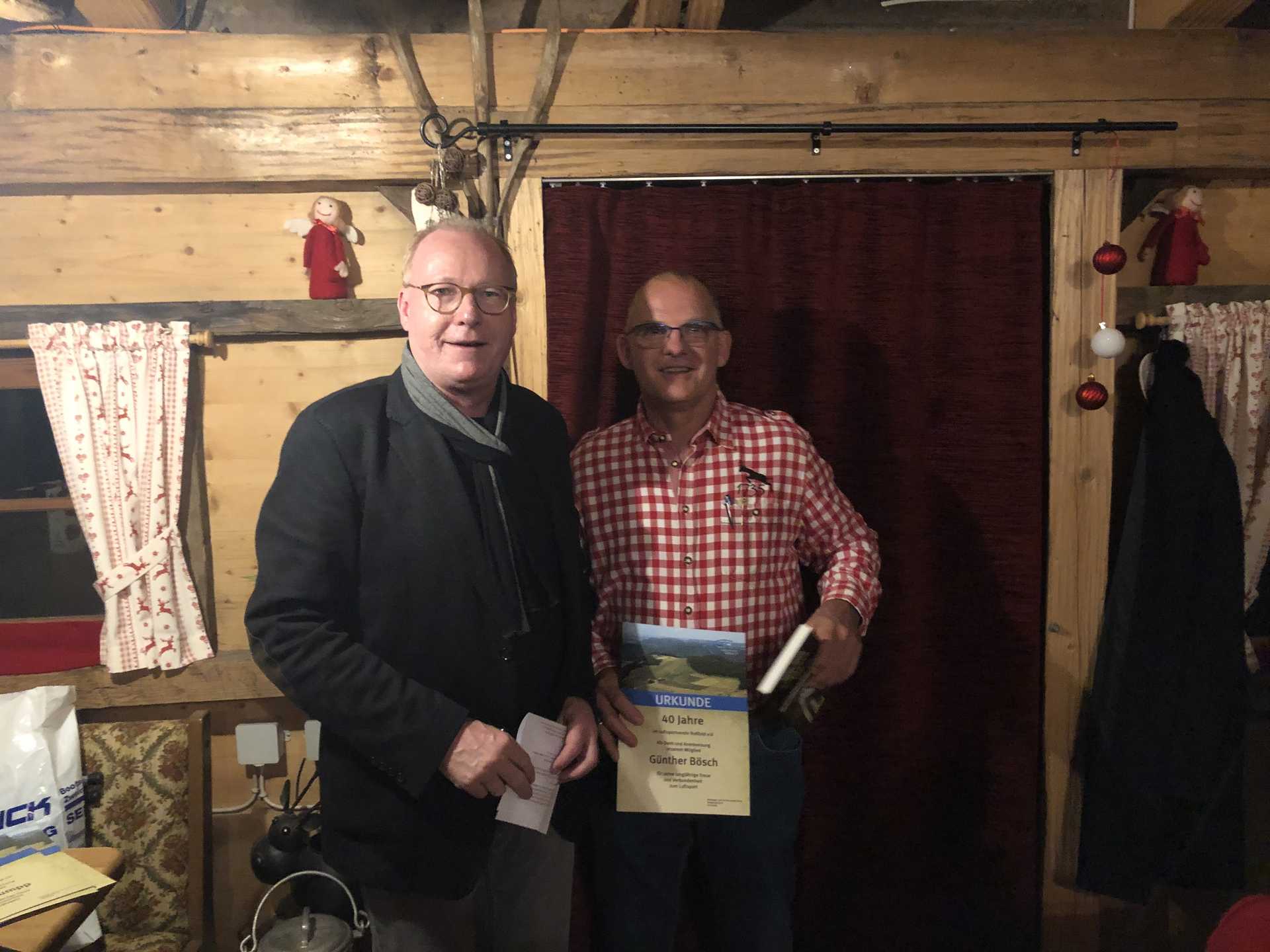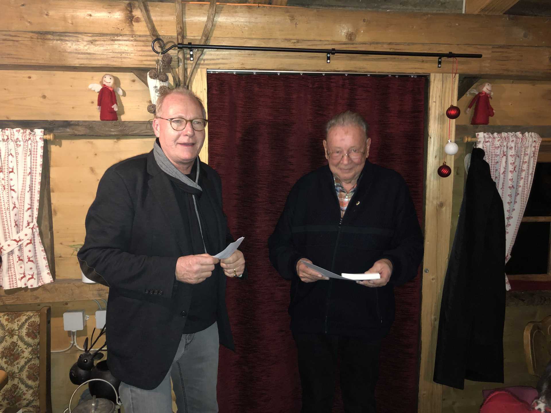 Zu Beginn wurden Bruno Handel und Günther Bösch durch den Vorsitzenden Wolfgang Schick für 50 und 40 Jahre Mitgliedschaft im LSV Roßfeld gebührend geehrt.