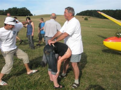 Bedingt durch die geringe Teilnahme am Flugbetrieb am Sonntag durfte Martina gleich zwei Durchläufe aller Anwesenden erfahren. Damit war auch Ihr Popometer entsprechend geeicht. |