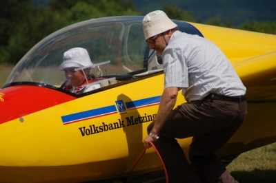 ![]() Max mit Fluglehrer Peter Sautter vor dem Start. ![]() Nichts zu tun für Peter! |