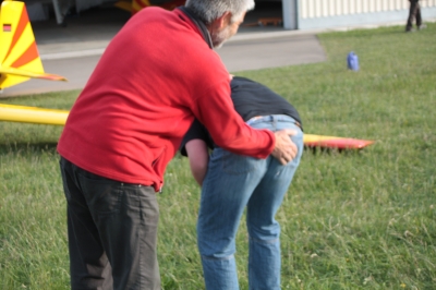 Marina Wörner mit Prüfer Hans Wener vor dem Start. Wenn Mama Sandra das Vesper bringt, muss auch die beste Thermik warten. Danke für die super Verpflegung! Beendet wurde das Lager fast schon traditionell mit leckeren Forellen vom Grill. ![]() ![]() Und auch das ein oder andere Bierchen wurde natürlich getrunken! Prost Dieter! |
