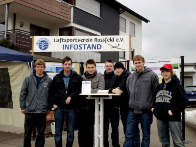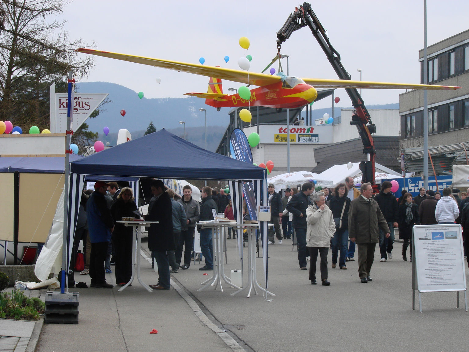 Zum wiederholten Mal repräsentierte sich der Luftsportverein Roßfeld zusammen mit der Firma Kilgus bei der diesjährigen Gewerbeschau in der Metzinger Gutenbergstrasse. Mit einem Infostand des LSV wurden Interessierte über die Möglichkeiten einer fliegerischen Ausbildung informiert. Von Segelfliegen über Ultralight bis hin zum Motorsegeler waren alle Sparten des Vereins vertreten. Bei einigermaßen trockenem Wetter konnten Groß und Klein auch schon einmal in einem extra dafür bereitgestellten doppelsitzigen Hochleistungs - Segelflugzeug (Duo Discus) Platz nehmen und sich wie ein Pilot fühlen. Mit unserem neuen Info-Flyer in der Hand hörten wir die Begeisterten oft sagen: Wir sehen uns wieder auf dem Roßfeld.