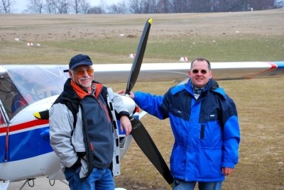 Auf dem Bild Norbert Schur mit unserem UL Fluglehrer Günther Bösch, es fehlt Timo Kuhn.