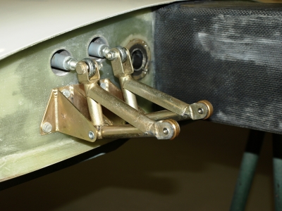 Werkstattleiter Eugen Kuhn (Mitte) erläutert den Flugschülern Martina Häubel (li.) und Achim Kuhn (re.) den Einbau der Trimmklappe eines Höhenruders.Anschlüsse für Landeklappen und Querruder eines Hochleistungs-Segelflugzeugs. |