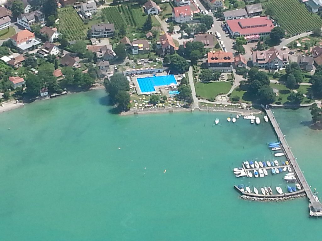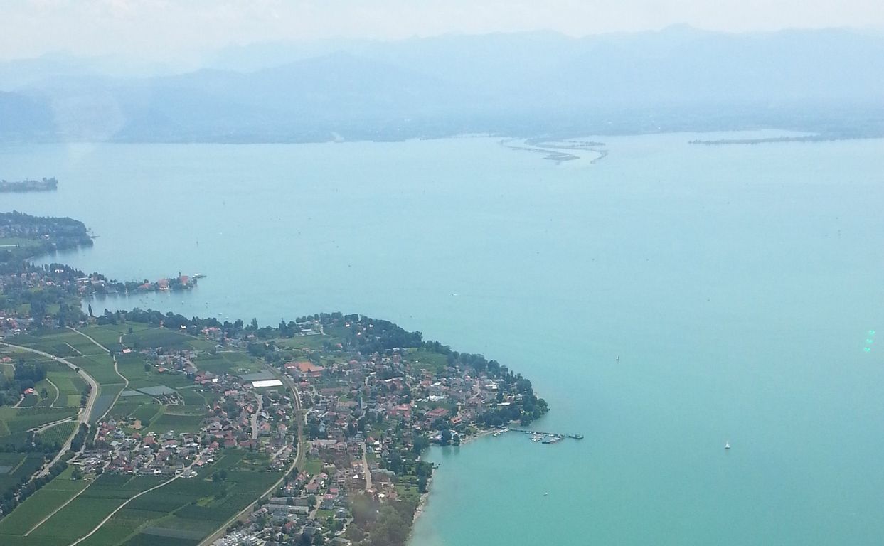 Die Wettervorhersage versprach tolles Flugwetter, schnell war das UL gecheckt und gegen 10 Uhr zog uns der ROTAX grummelnd vom Roßfeld in den noch wolkenlosen Himmel Konstanz entgegen. Der dunstigen Atmosphäre und der damit verbundenen schlechten Sicht wegen meldete sich Alexander gleich bei Langen INFORMATION an, um auch von dieser Seite Verkehrsinformationen zu erhalten. Wie sinnvoll dieser Entschluss war zeigte sich, als uns kurz danach ein Rettungshubschrauber auf Gegenkurs gemeldet wurde und - für uns aus der Sonne kommend - wenige Sekunden später ca. 100 Meter unter uns hindurchflog.